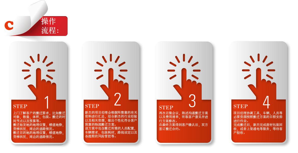 根據(jù)搬運(yùn)對(duì)象不同, 所處地點(diǎn)不同,新杰會(huì)為其量身定做一個(gè)個(gè)性化的符合客戶預(yù)算物流解決方案。該方案中,